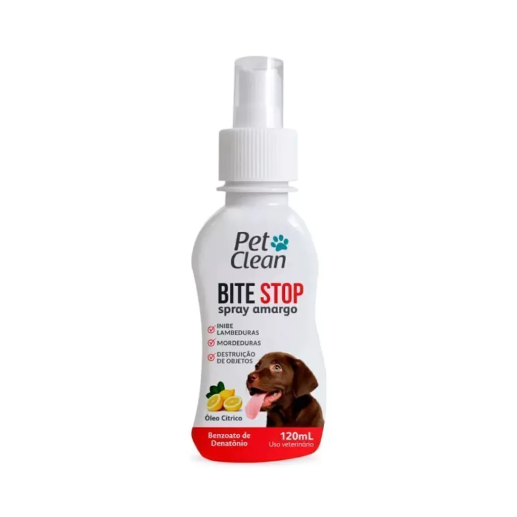 O Bite Stop Spray Amargo da Pet Clean é um repelente indicado para auxiliar no treinamento de cães, cavalos, ferrets, coelhos, pássaros e roedores.