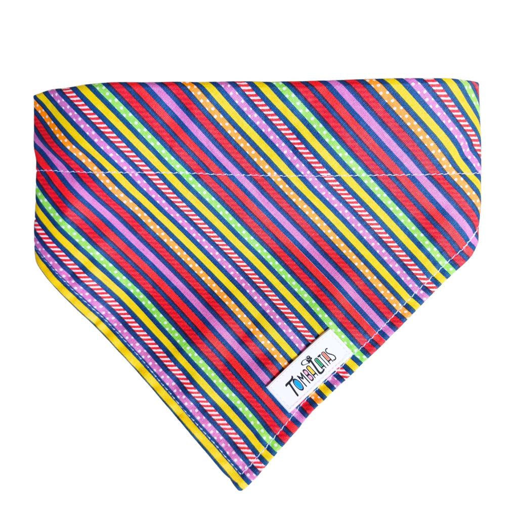 Se você está procurando um acessório que seja ao mesmo tempo funcional e estiloso, não procure mais! Nossa Coleira Bandana com estampa listrada, é a escolha perfeita para encher o seu dia a do seu Pet com as mais belas cores.