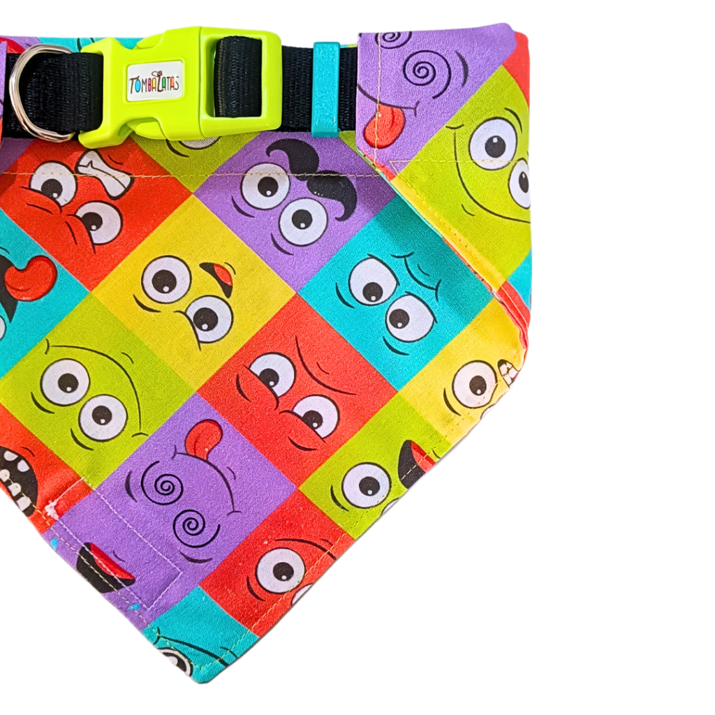 Se você está procurando um acessório que seja ao mesmo tempo funcional e estiloso, não procure mais! Nossa Coleira Bandana com estampa Crazy Face é a escolha perfeita para o seu pet.