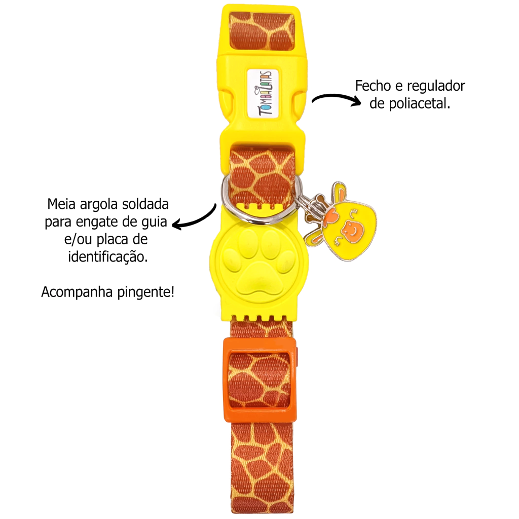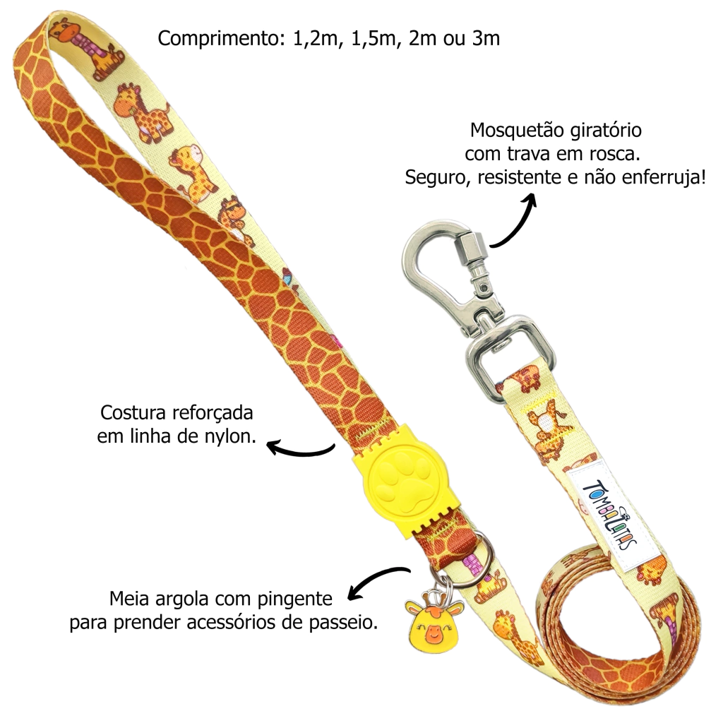 🐾 Coleira: A coleira do Kit Passeio Tombalatas é um verdadeiro charme! Com uma argola perfeita para engatar o mosquetão, pingente ou plaquinha de identificação, você pode personalizar ainda mais o visual do seu companheiro de quatro patas. Assim como a guia, a coleira também vem com um pingente exclusivo. Que estilo!