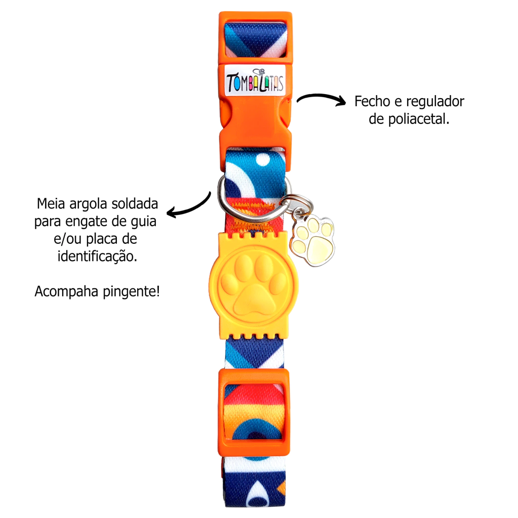 🐾 Coleira: A coleira do Kit Passeio Tombalatas é um verdadeiro charme! Com uma argola perfeita para engatar o mosquetão, pingente ou plaquinha de identificação, você pode personalizar ainda mais o visual do seu companheiro de quatro patas. Assim como a guia, a coleira também vem com um pingente exclusivo. Que estilo!