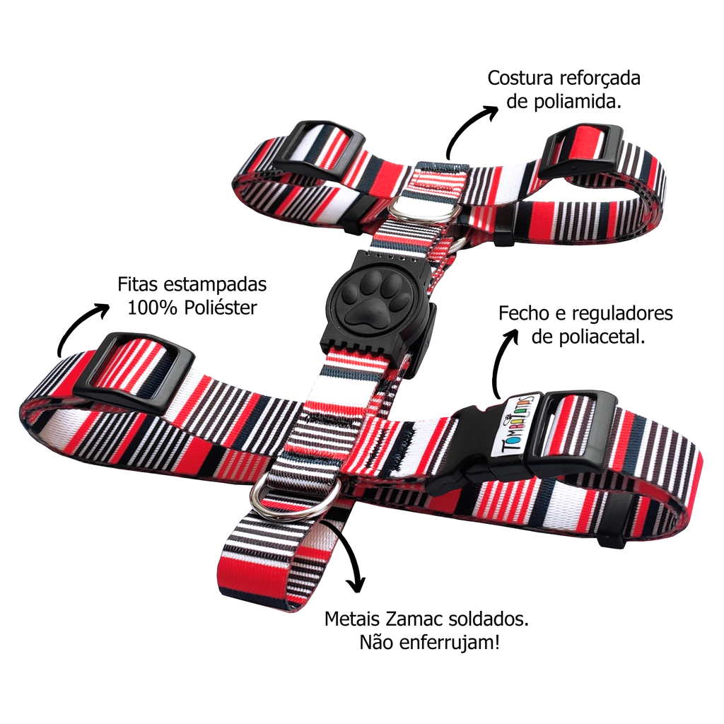 🐶 Peitoral: O modelo H do peitoral é a combinação perfeita de conforto e controle. Com 4 pontos de regulagem, você pode ajustar perfeitamente ao corpo do seu pet, garantindo um encaixe perfeito. Além disso, possui 3 pontos para acoplagem do mosquetão, permitindo o uso como anti-puxão. Adeus, puxões indesejados!