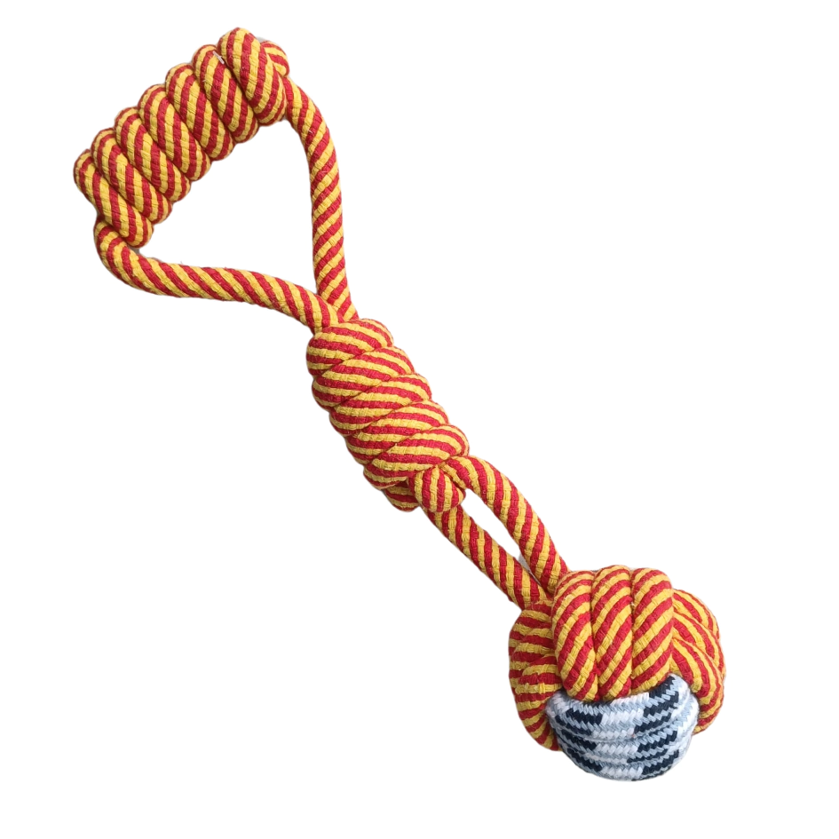 O mordedor Cabo de Guerra com bola de corda estimula a atividade física, o uso da força e o gasto de energia do seu cachorro.