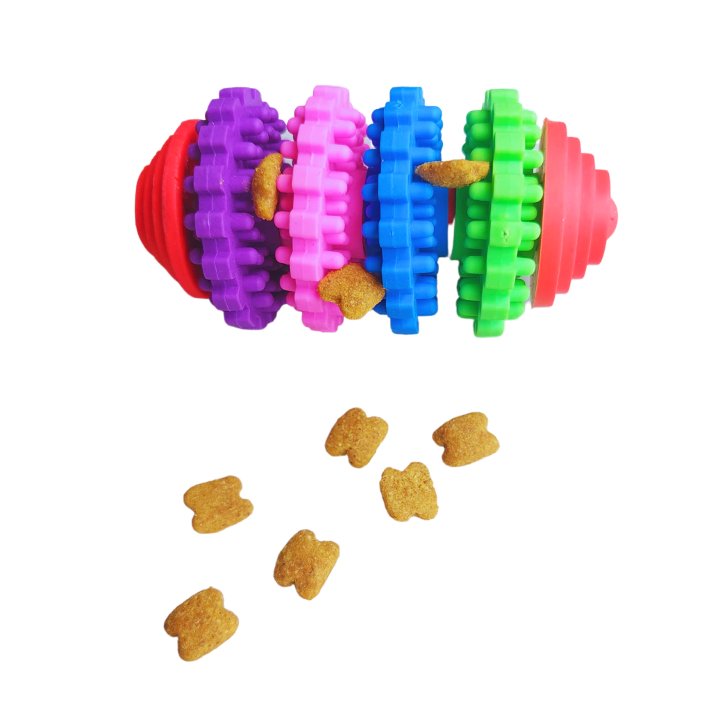 Além disso, este brinquedo é projetado com vãos estratégicos entre as peças giratórias, onde é possível inserir petiscos secos ou molhados, tornando a brincadeira ainda mais interessante e recompensadora. Seu cão vai adorar o desafio de girar as peças para encontrar e saborear os petiscos escondidos, promovendo um enriquecimento mental e físico durante a brincadeira.