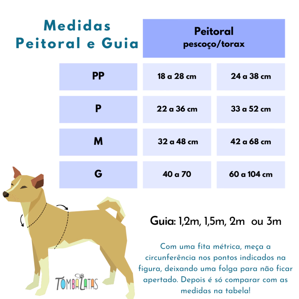 Chegou a hora de levar seu pet para passear com muito estilo e segurança com o Peitoral e Guia Tombalatas. Com esse conjunto, você terá tudo o que precisa para garantir passeios divertidos e sem preocupações!